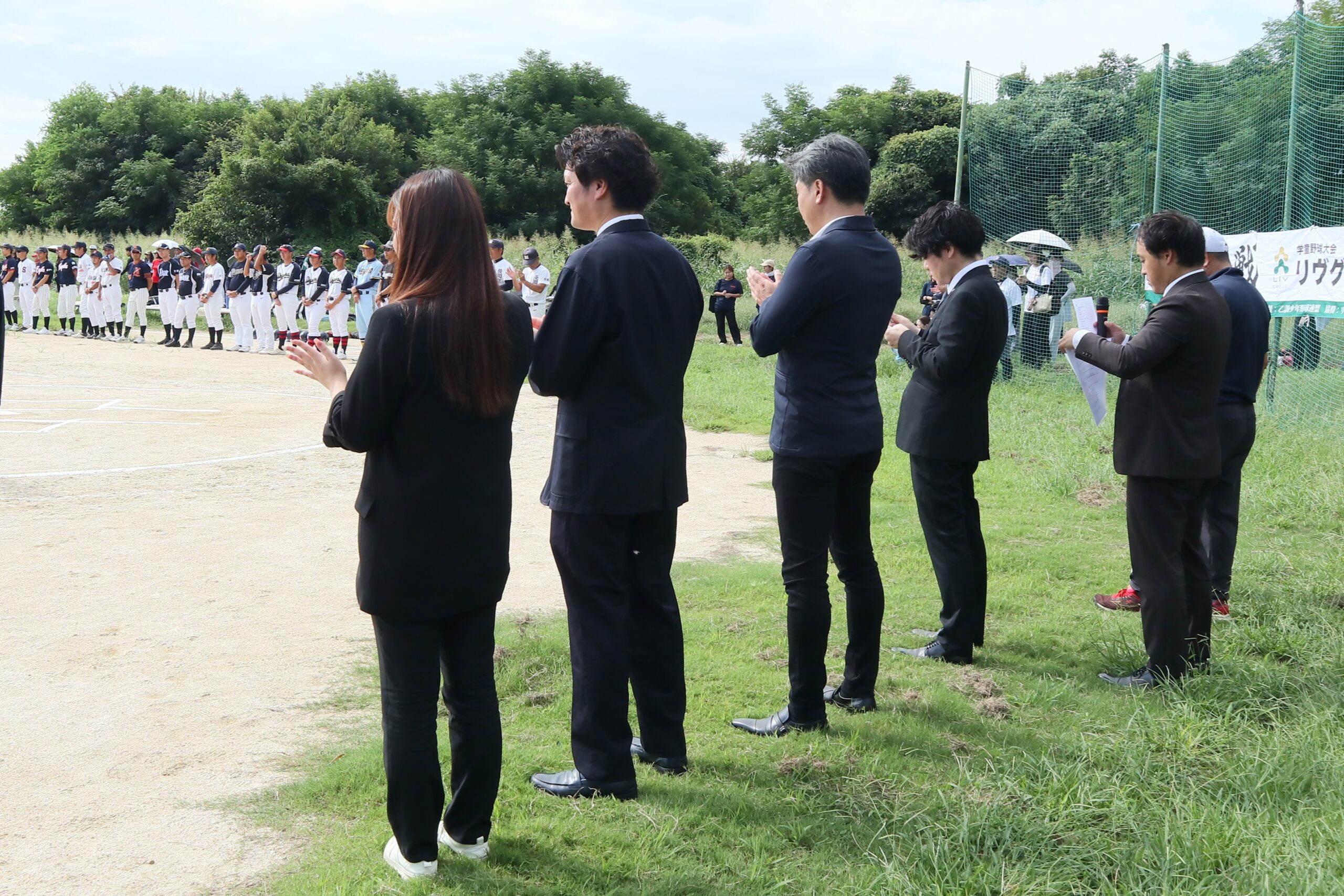 開会式では、リヴグループのスタッフも参加し、大会公式パンフレットのプレゼントをはじめ、応援のメッセージを届けたり、始球式のピッチャーを務めさせていただいたり…。